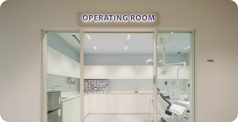 임플란트 수술 진행 시 철저히 분리된 1인 수술실을 운영합니다. 외부 소음과 시선을 차단하여 환자분은 심리적 안정을 찾고, 의료진은 수술에만 온전히 집중할 수 있는 환경을 만들었습니다. 감염 위험을 낮춘 쾌적한 공간에서 안전하게 치료받으실 수 있습니다.